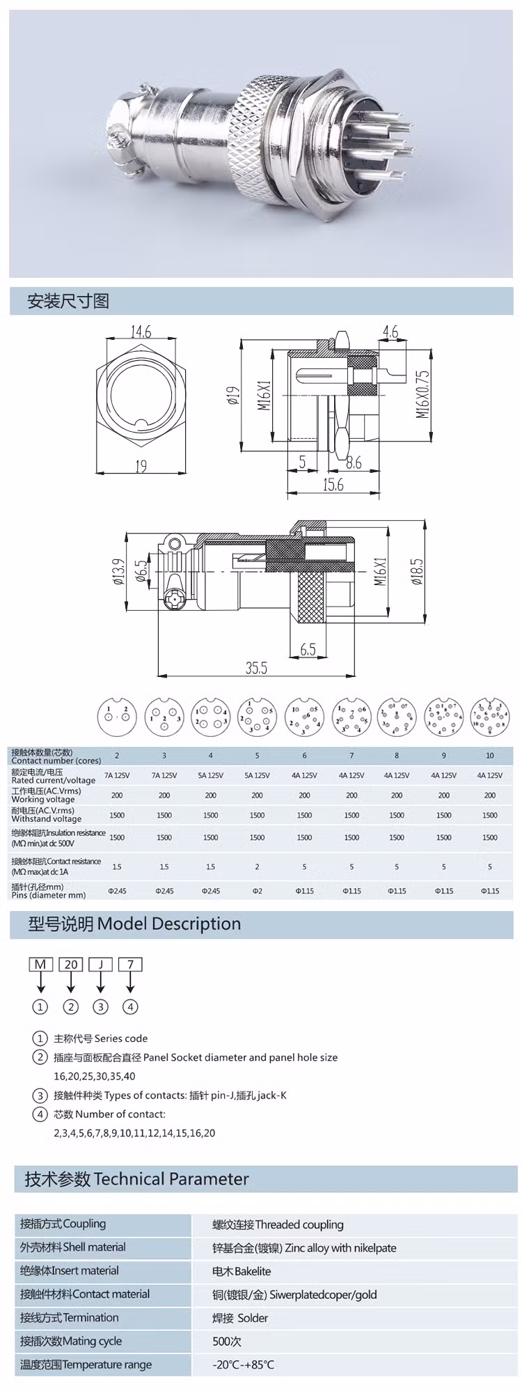 Gx16-7-AB 7 Typ männlicher Ankern Luftfahrt-Steckerverbinder Pin-16mm (DF16AB/M16AB)